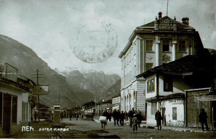 Jedan od najreprezentativnijih primera tog perioda je hotel „Korzo”, izgrađen 1929. godine od strane pećkog trgovca Aleksandra Aca Markovića. Arhitektonski objekat trapezoidne forme integrisan je u postojeći urbanistički okvir grada, pri čemu su spratne zgrade linearno raspoređene duž zrakasto organizovanih ulica koje se slivaju ka centralnom trgu. Nјegova uža, glavna fasada reprezentuje stilske karakteristike secesije, dok su bočne fasade simetrične i prate liniju susednih objekata.