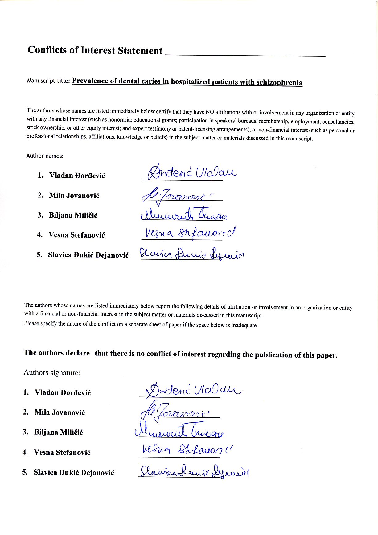 Prevalence of dental caries in hospitalized patients with schizophrenia