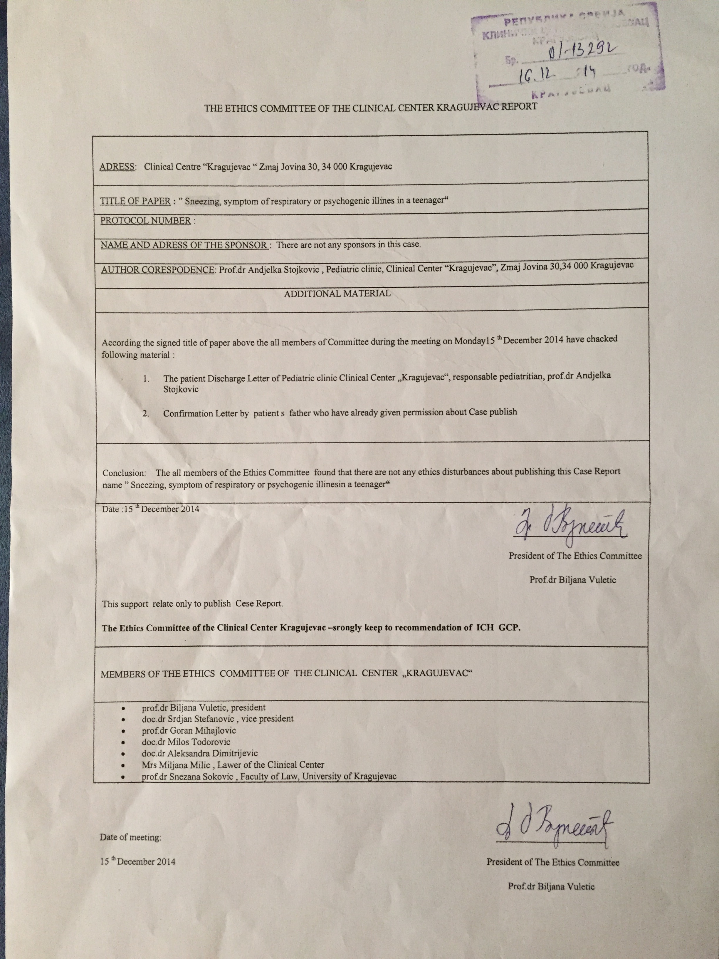 Sneezing – a symptom of respiratory or psychogenic superposition of illness in a teenager?
