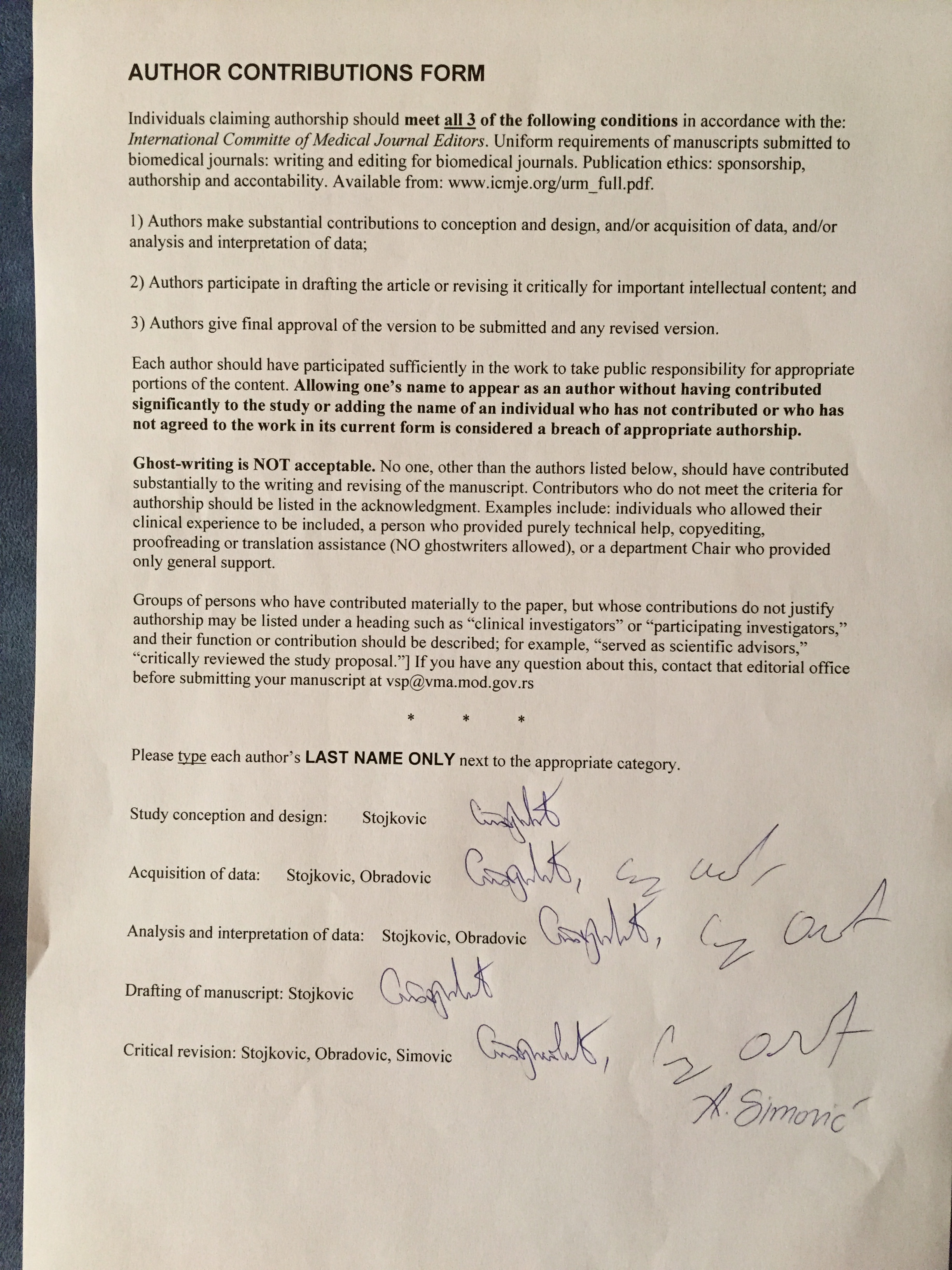 Abstract Table 1 Ethics Committee in Clinical Center COI FOR ALL AUTHORS Author Commitment Statement COI for Stojkovic COI for Obradovic COI for Simovic Author Contributions -