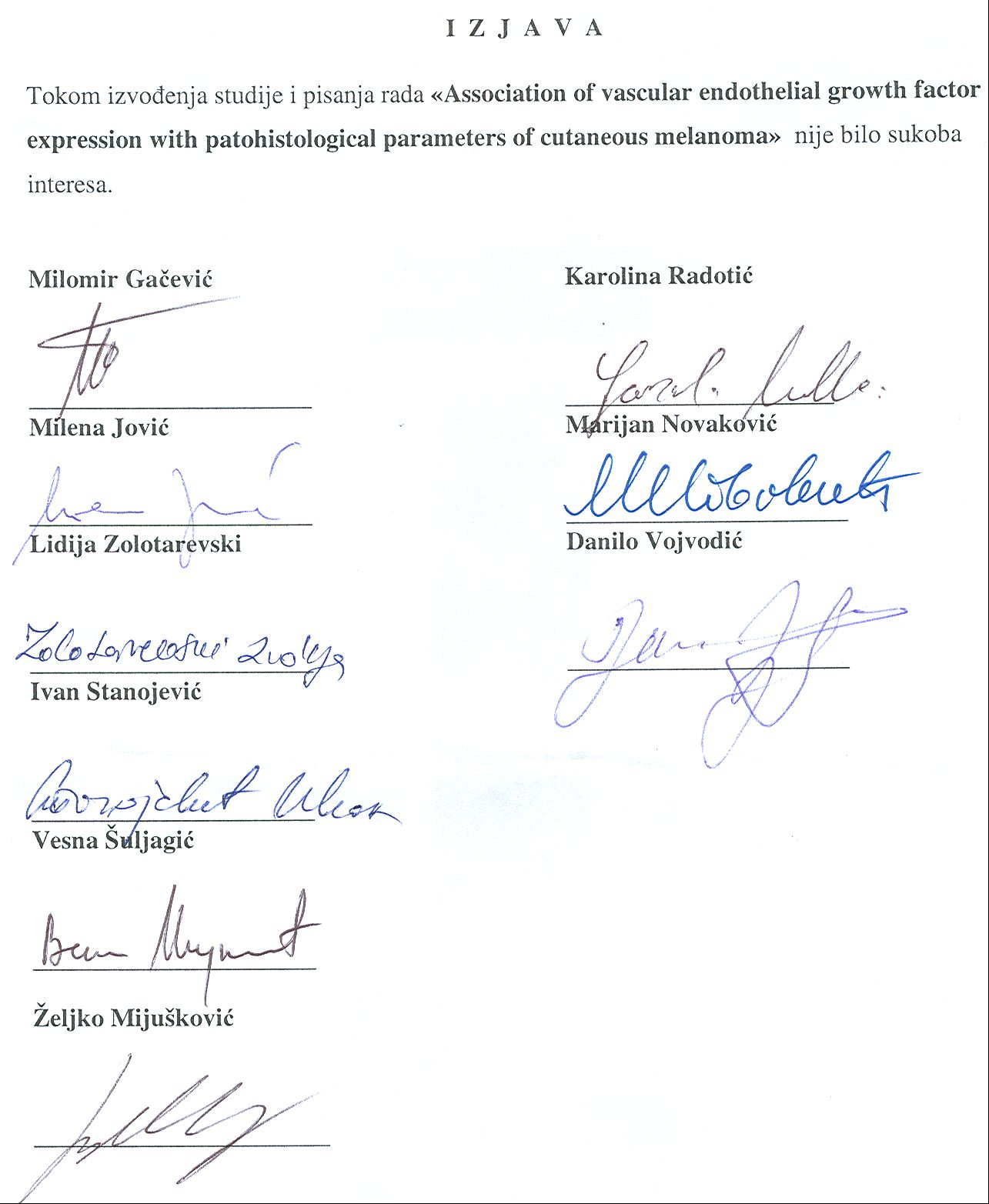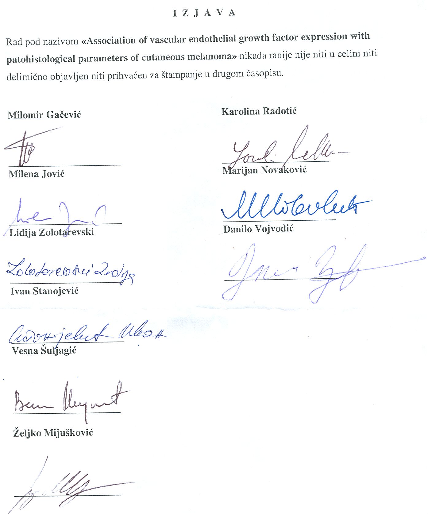 Association of vascular endothelial growth factor expression with patohistological parameters of cutaneous melanoma