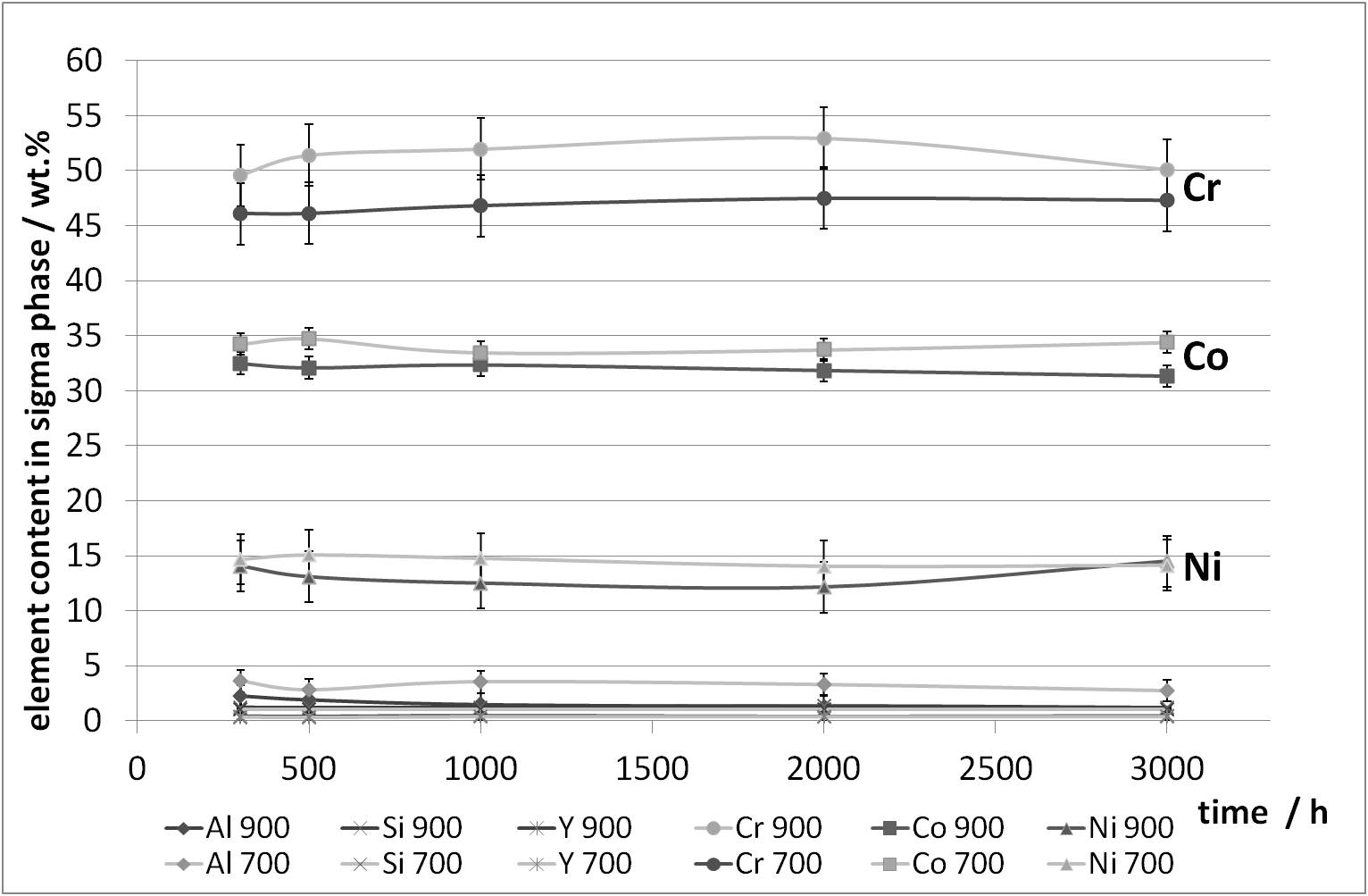 In the present work the evolution of an MCrAlY coating applied on René80 by LPPS (Low Pressure Plasma Spray) technique has been studied in order to verify if it was possible to identify a microstructural indicator of the service temperature. The specimens were exposed for different lengths of time at test temperatures of 700 – 800 – 900 °C in order to characterize the phase evolution with time and temperature. Selective etching was employed for optical metallographic investigation. Scanning Electron Microscopy (SEM) observation combined with Electron Backscattered Diffraction (EBSD) and Energy Dispersive Spectroscopy (EDS) showed that the coating is composed of a γ- Co matrix, β-AlNi, σ-(Cr, Co), Cr carbide and Y-rich phases. Among these phases, the sigma phase resulted in a temperature – composition dependence that can be a useful tool for evaluating the local service temperature and modelling the residual lifetime.