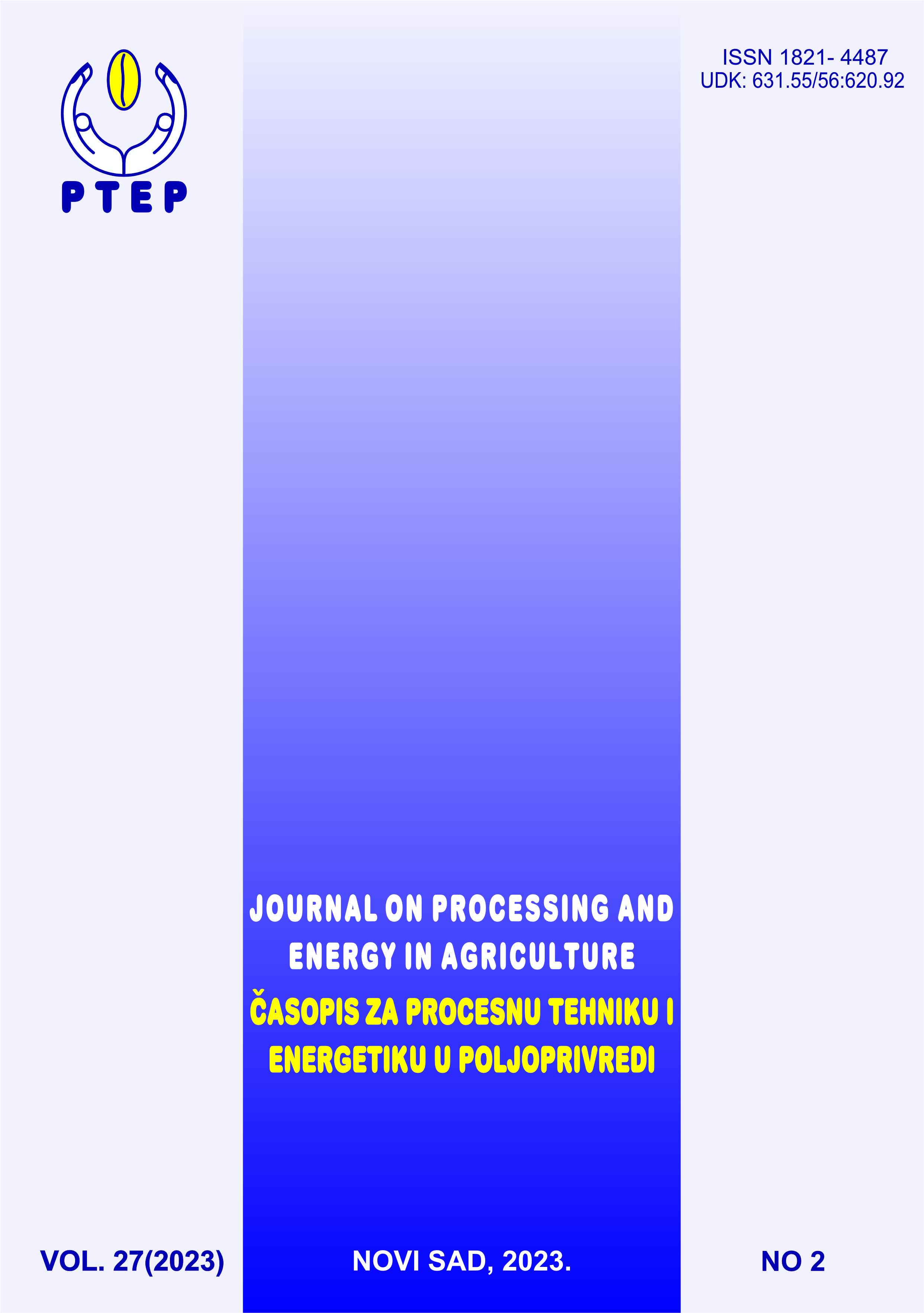 Za potrebe ovog istraživanja formulisane su četiri smeše za ishranu Evropskog soma sa istim sadržajem proteina (oko 400 g/kg) sa dodatkom 0, 100, 200 i 300 g/kg kukuruznog DDGS-a, koje su potom podvrgnute procesu ekstrudiranja dvopužnim ekstruderom. Cilj ovog istraživanja bio je da se ispita uticaj dodatka DDGS-a na parametre procesa ekstrudiranja, kao i na fizički kvalitet tonućih peleta. Svi sastojci smeše su fino samleveni mlinom čekićarem, potom umešani i kondicionirani dodatkom pare na temperaturu od 95 °C i do sadržaja vlage od oko 250 g/kg. Kondicionirana smeša je zatim ekstrudirana dvopužnim ekstruderom sa namerom da se proizvedu tonuće pelete. Dodatkom DDGS-a u hranu za soma smanjena je specifična mehanička energija ekstrudiranja, što je dovelo do značajnog smanjenja (p < 0.05) radijalne ekspanzije peleta pri dodatku DDGS-a u količini od 200 i 300 g/kg. Uključenje kukuruznog DDGS-a u recepturu od 100 i 200 g/kg za rezultat je imalo pelete sa značajno većom tvrdoćom i otpornošću na otiranje (p < 0.05) i bez značajnih promena (p > 0.05) u stabilnosti u vodi u poređenju sa kontrolnom smešom bez dodatka DDGS-a. Kukurzni DDGS se pokazao ne samo kao relativno jeftin izvor proteina u hrani za ribe, već i kao tehničko-funkcionalni sastojak koji može da smanji troškove proizvodnje dok istovremeno povećava kvalitet ekstrudirane hrane za ribe u pogledu otpornosti na mehanički stres prilikom transporta, skladištenja i pneumatskog doziranja.